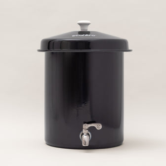 Choisissez le modèle Ecofiltro qui convient à votre maison et à votre mode de vie. Fabriqué en acier vitrifié durable et équipé d'un robinet en acier inoxydable, ce filtre fournit une eau propre et sans plastique. Il est idéal pour les ménages d'une à deux personnes. La filtration commence à un ou deux verres par heure et augmente progressivement jusqu'à environ un demi-litre par heure.